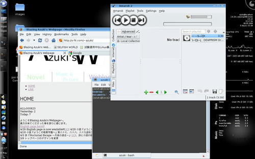 まあ、そこそこ格好いいし、KDEテーマOxygenとsuperkarambaのシステムモニタ(見づらいかもしれませんが、右の方にある文字がデスクトップに貼り付けられてるやつ)にマッチしてるし。